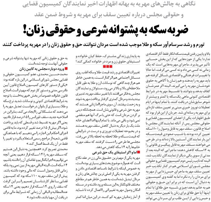 روزنامهٔ جوان: ضربه سکه به پشتوانه شرعی و حقوقی زنان!