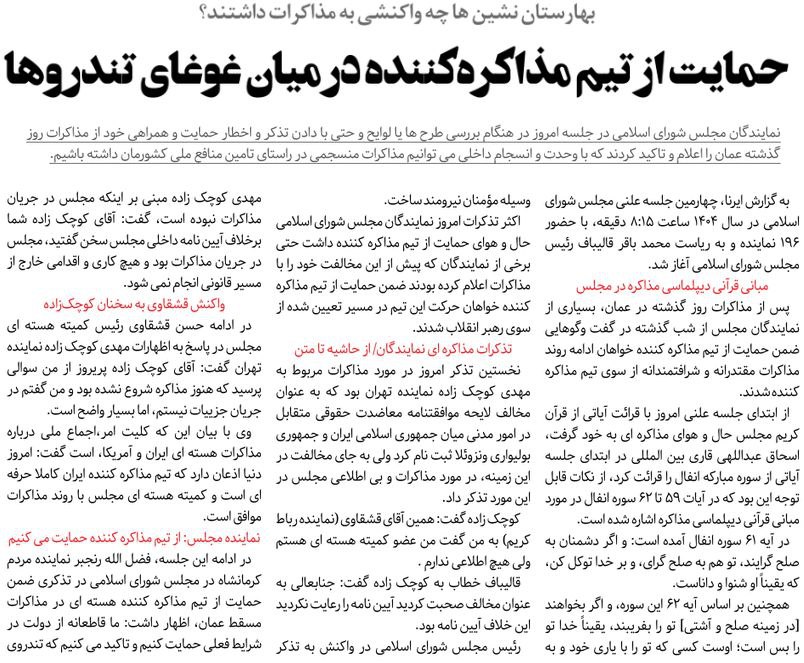 مجلس در مطبوعات – ۲۵ فروردین ۱۴۰۴