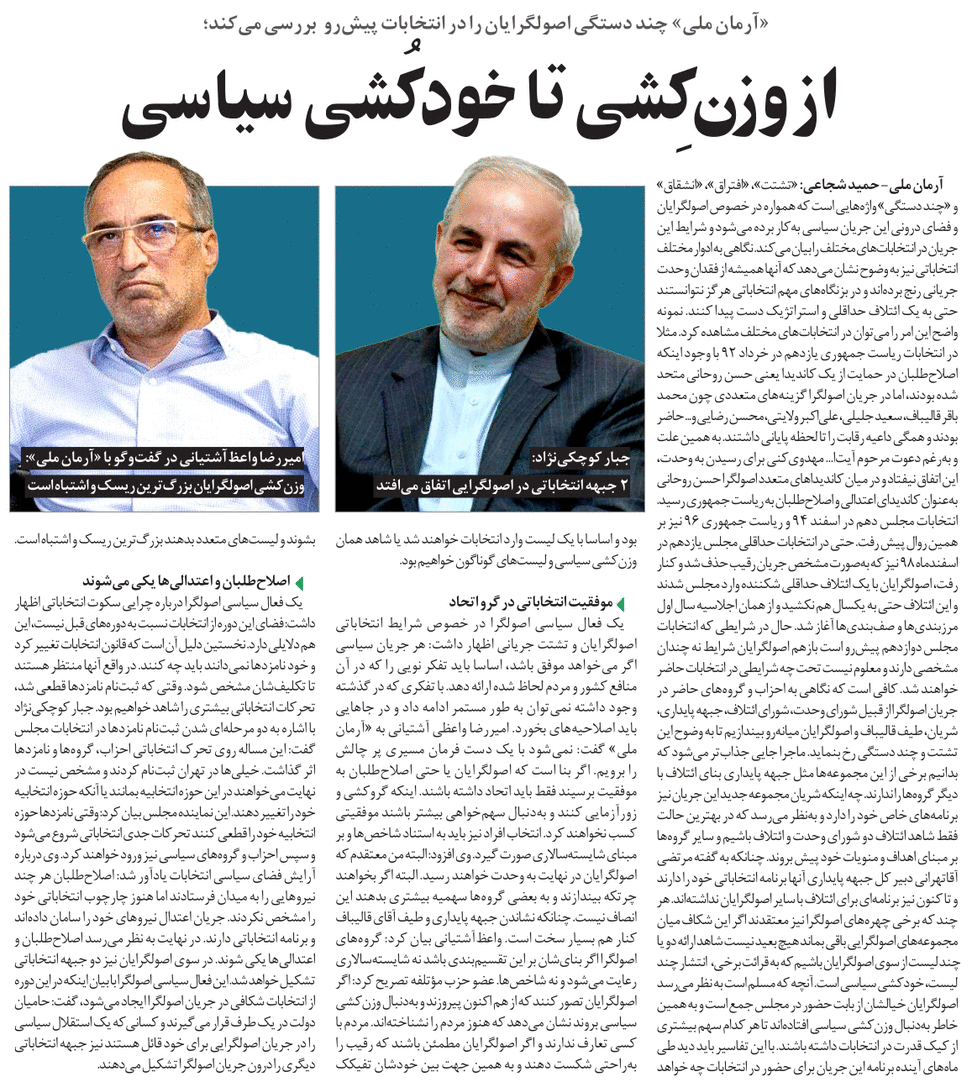 روزنامه آرمان ملی: از وزنکشی تا خودکشی سیاسی