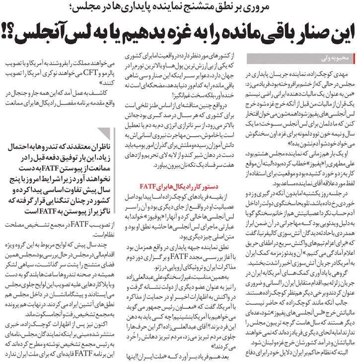 روزنامهٔ آرمان ملی: احساسی کردن فضا علیه FATF