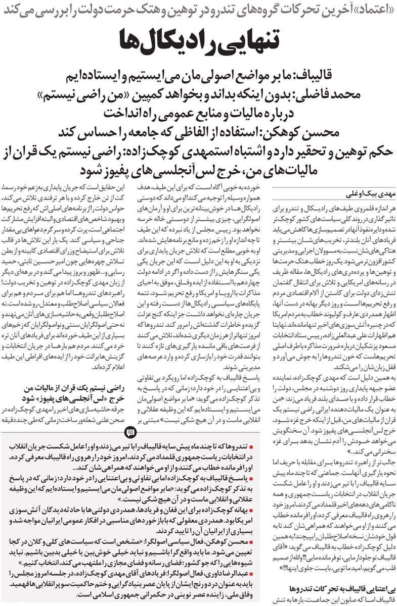 روزنامهٔ اعتماد: تنهایی رادیکالها