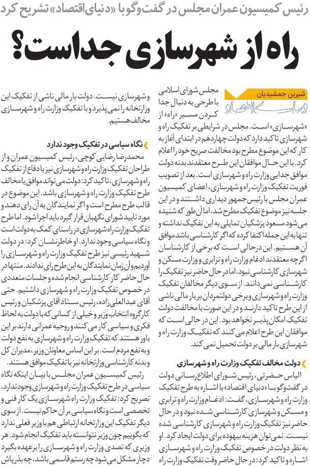 روزنامهٔ دنیای اقتصاد: راه از شهرسازی جداست؟