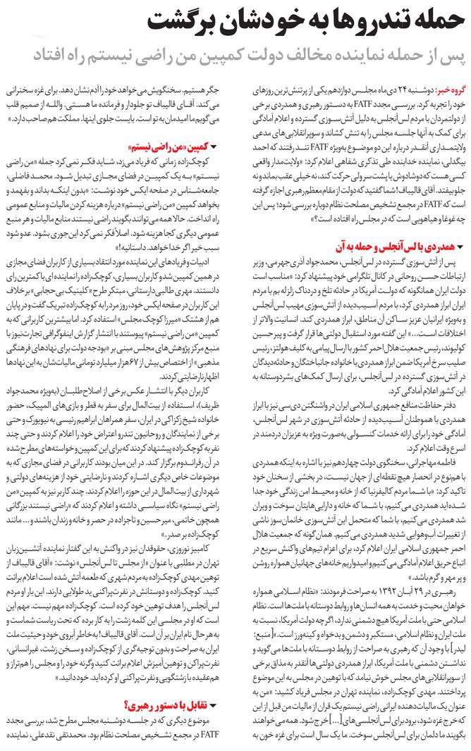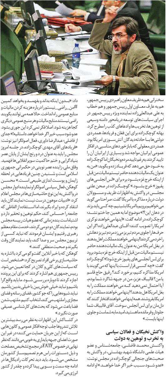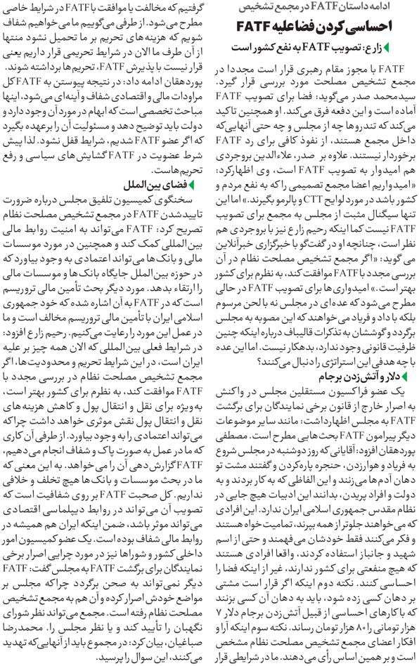 روزنامهٔ آرمان ملی: احساسی کردن فضا علیه FATF