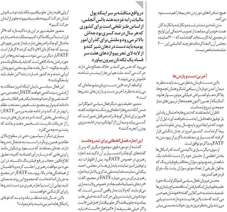 روزنامهٔ آرمان امروز: راز مخالفت تندروها با پذیرش FATF