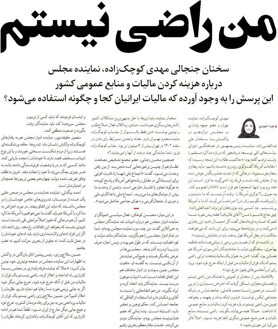 روزنامهٔ توسعهٔ ایرانی: این صنار باقیمانده را به غزه بدهیم یا به لسانجلس؟