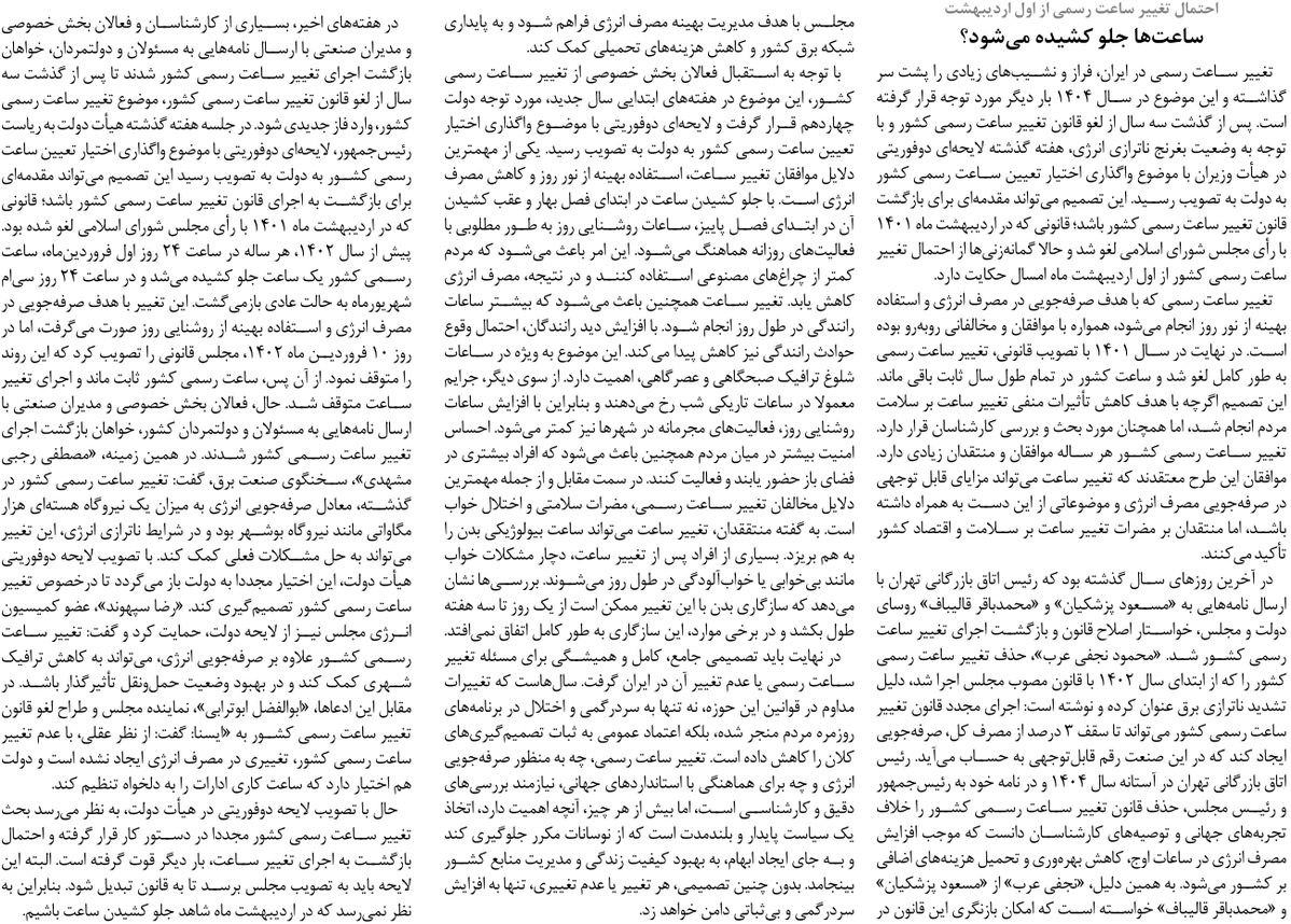 روزنامهٔ فرصت امروز: ساعت‌ها جلو کشیده می‌شود؟