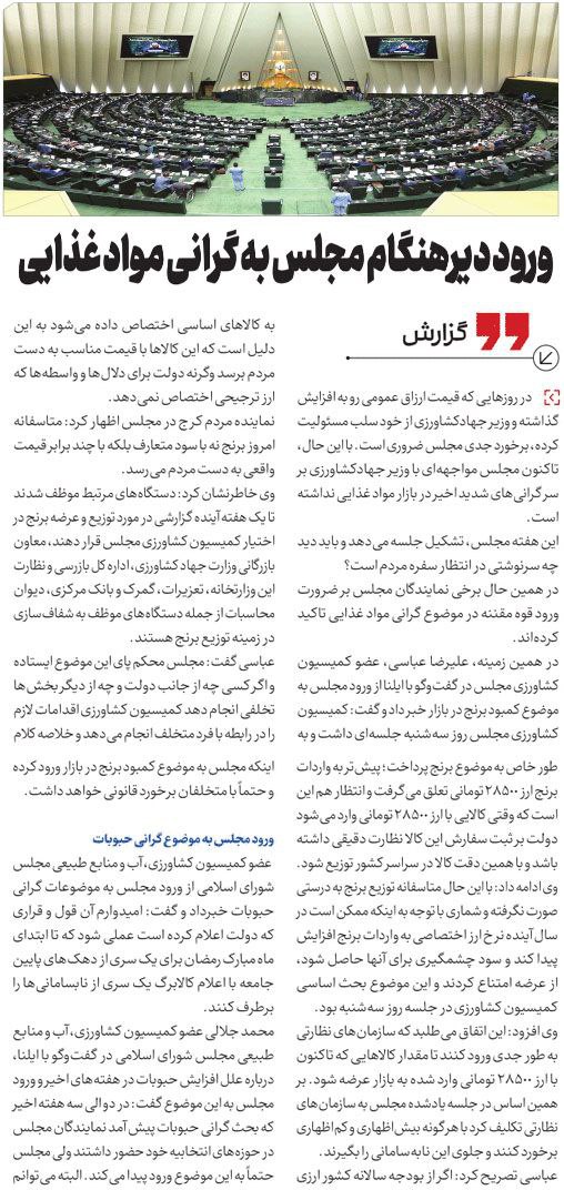 روزنامهٔ چارسوق: ورود دیر هنگام مجلس به گرانی موادغذایی