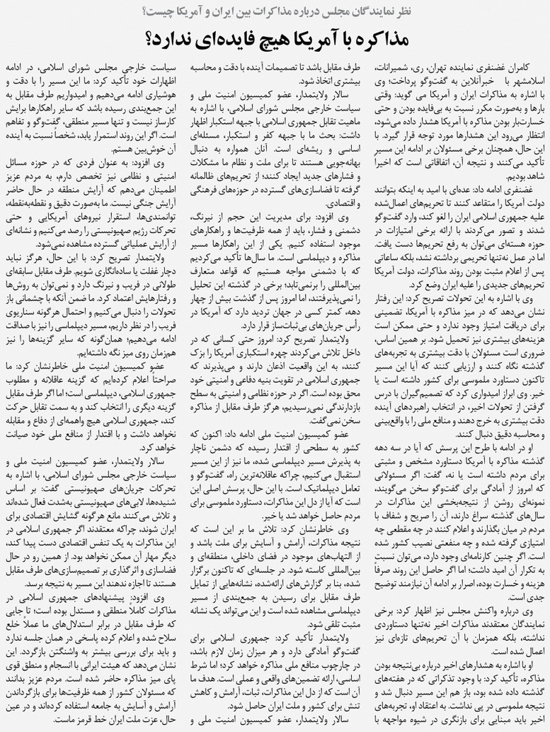 روزنامهٔ روزان: مذاکره با آمریکا هیچ فایدهای ندارد؟