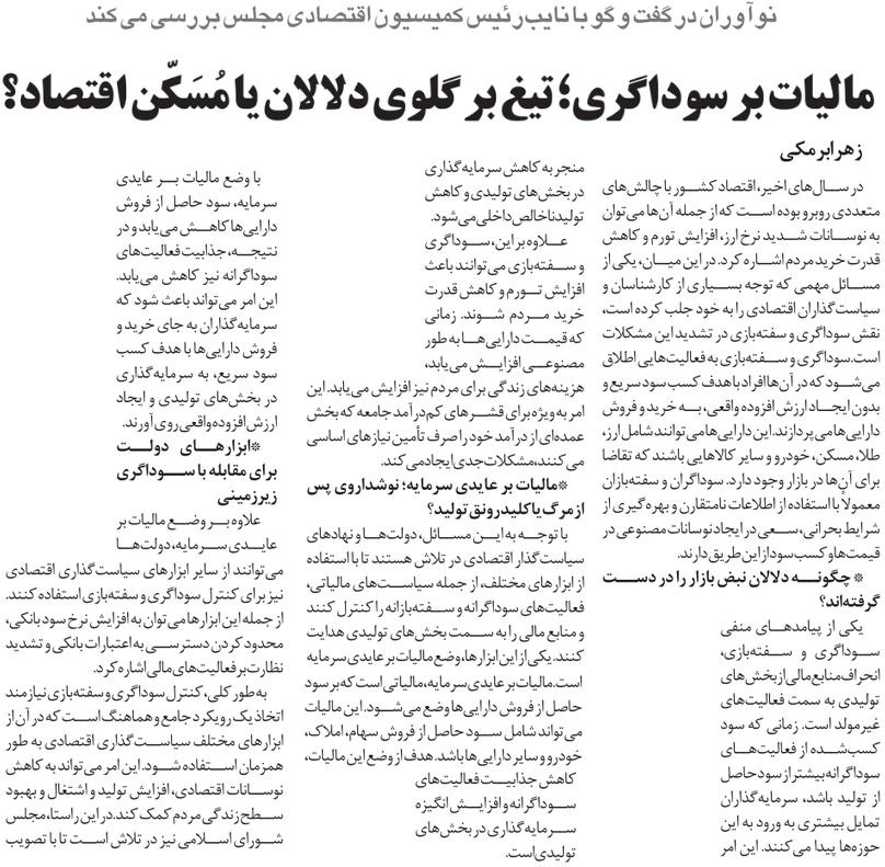 روزنامهٔ نوآوران: مالیات بر سوداگری، تیغ بر گلوی دلالان یا مسکن اقتصاد؟