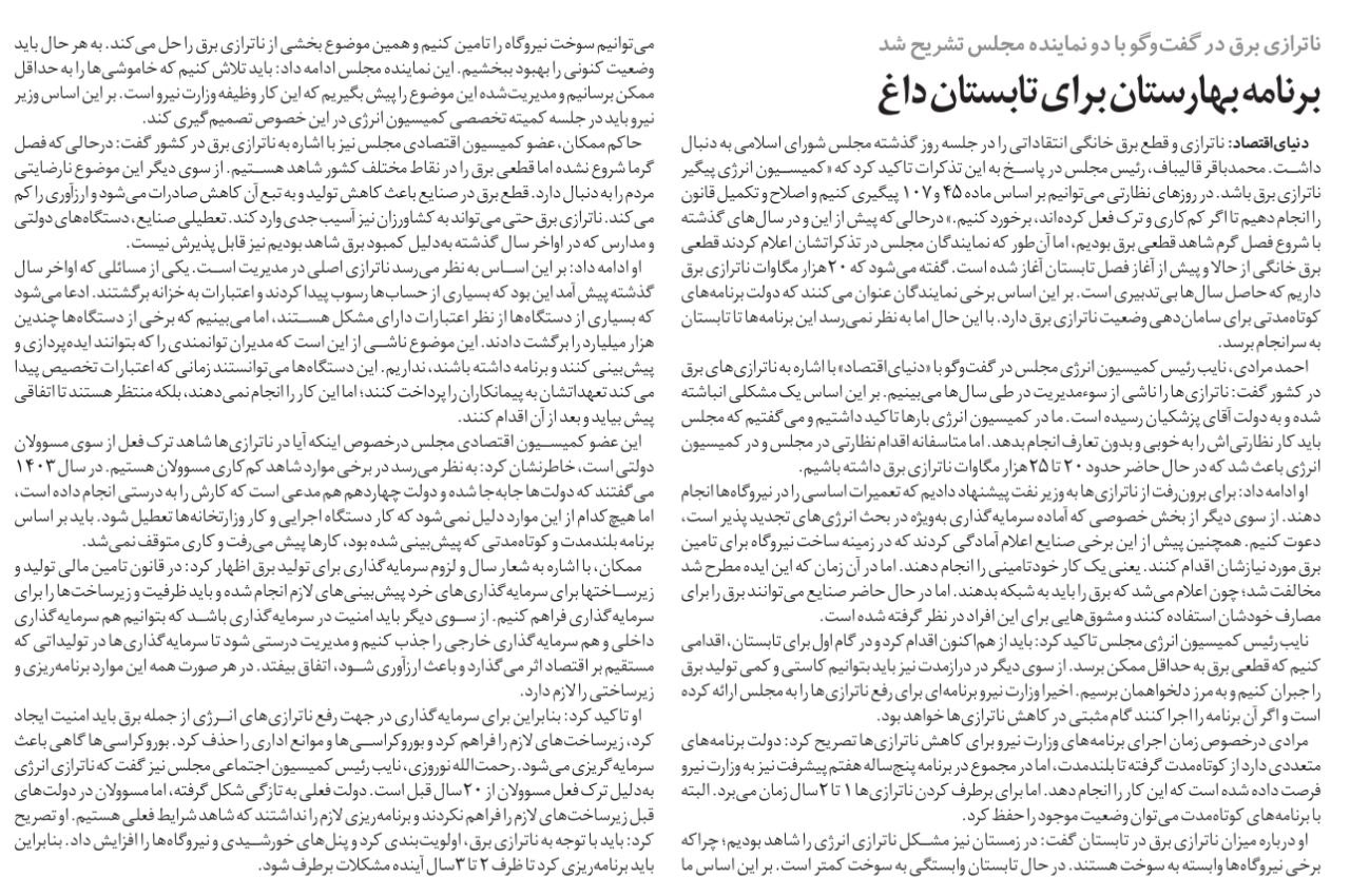 روزنامهٔ دنیای اقتصاد: برنامه بهارستان برای تابستان داغ