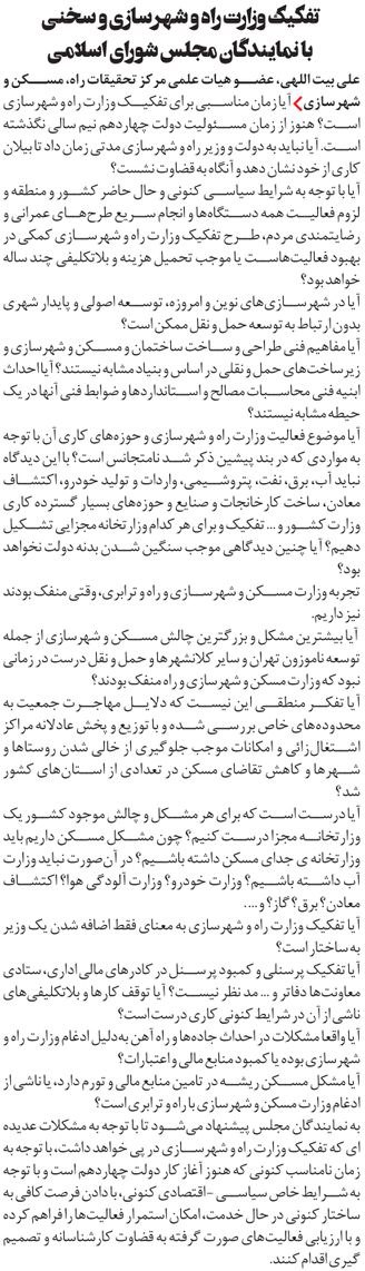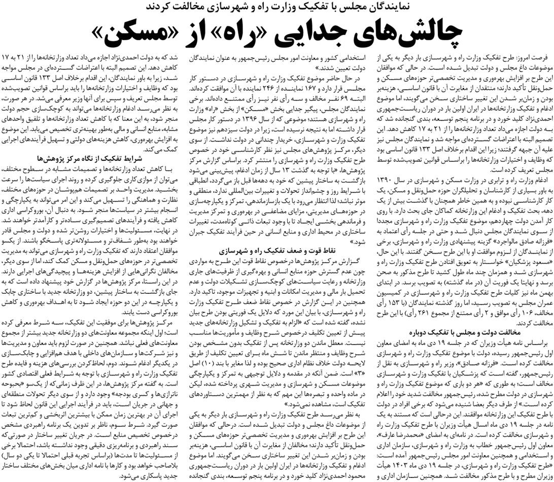 روزنامهٔ دنیای اقتصاد: چرا تجزیه راه و شهرسازی رای نیاورد؟