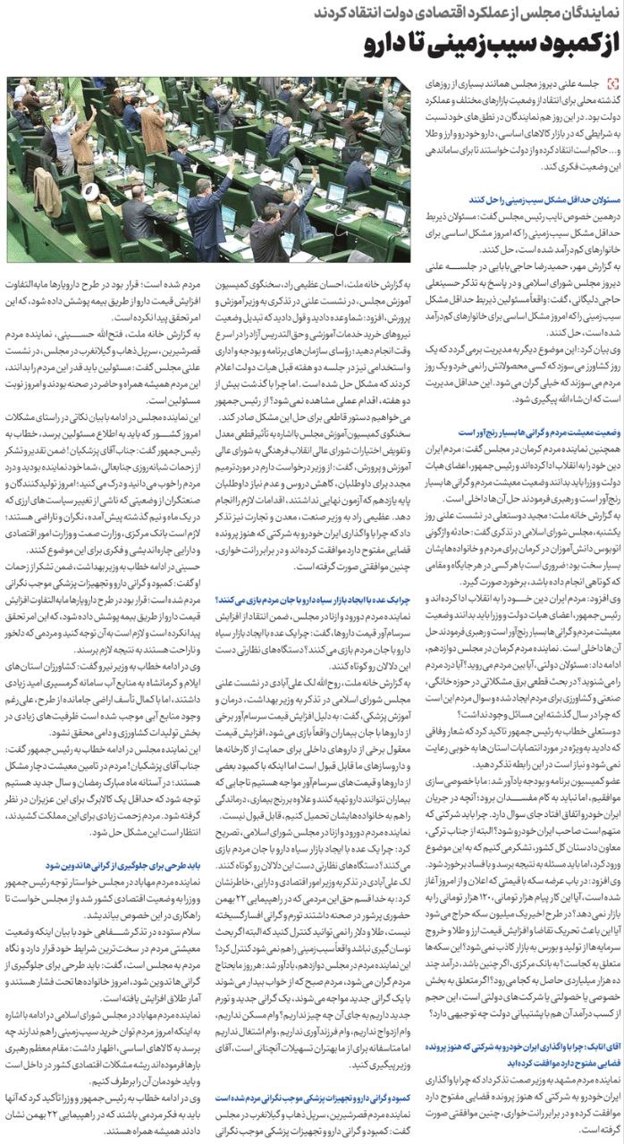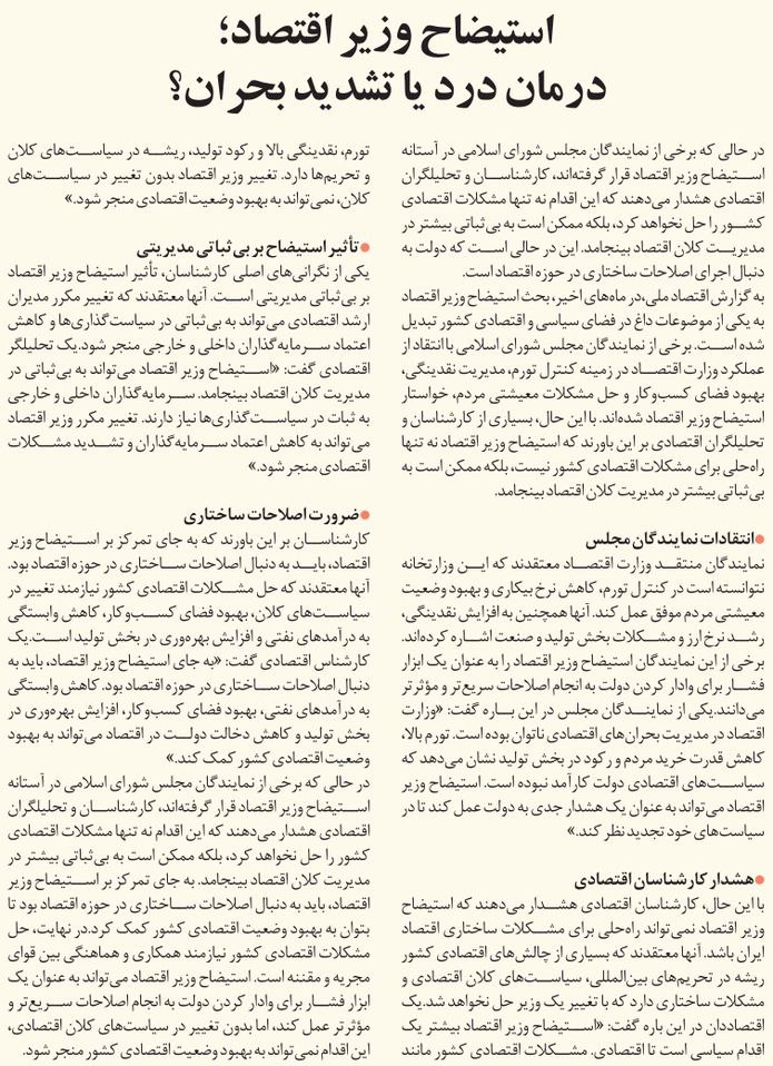روزنامهٔ اقتصاد ملی: استیضاح وزیر اقتصاد، درمان درد یا تشدید بحران؟