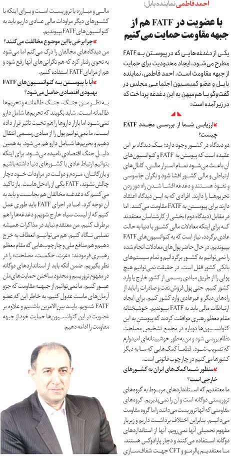 روزنامهٔ هم‌میهن: با عضویت در FATF هم از جبهه مقاومت حمایت می‌کنیم