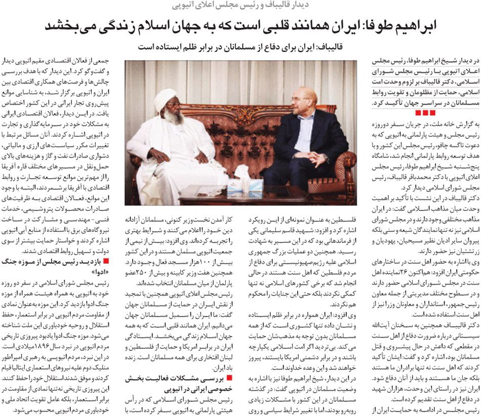 روزنامهٔ ایران: راه‌انداز خط هوایی تهران و آدیس آبابا