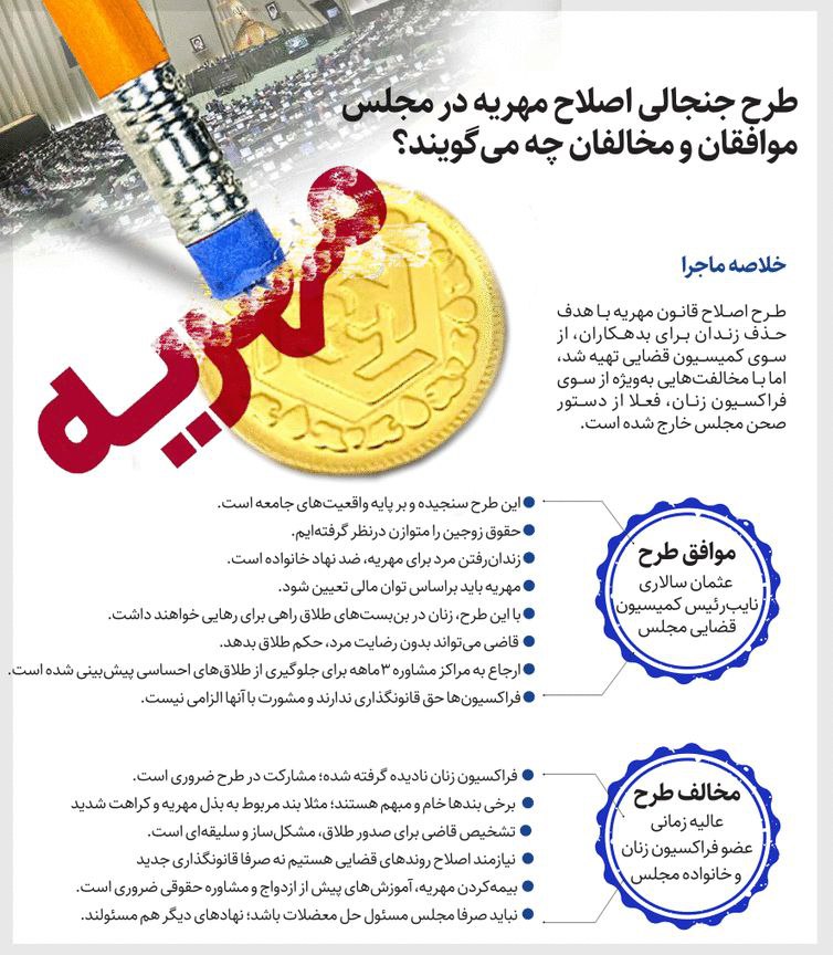 روزنامهٔ همشهری: طرح جنجالی اصلاح مهریه در مجلس موافقان و مخالفان چه میگویند؟