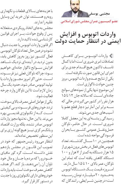 روزنامهٔ دنیای خودرو: واردات اتوبوس و افزایش ایمنی در انتظار حمایت دولت