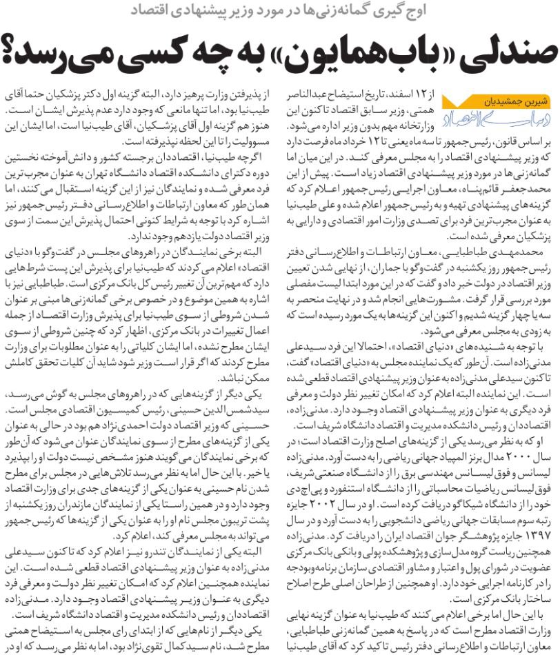 روزنامهٔ دنیای اقتصاد: صندلی «بابهمایون» به چه کسی میرسد؟