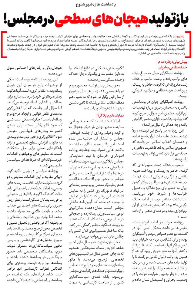 روزنامهٔ شهروند: باز تولید هیجان‌های سطحی در مجلس