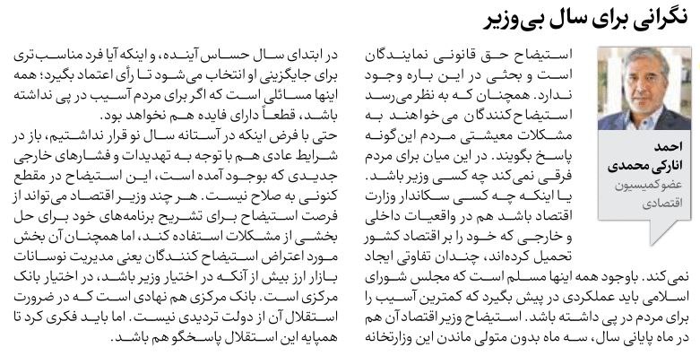 روزنامهٔ ایران: نگرانی برای سال بی‌وزیر