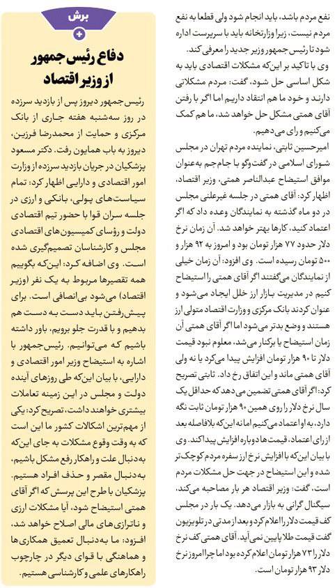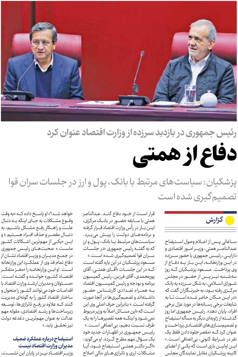 روزنامهٔ ایران: دفاع از همتی
