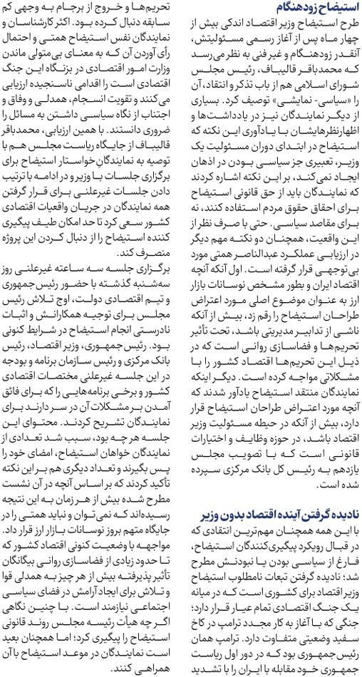 روزنامهٔ ایران: استیضاح نابهنگام
