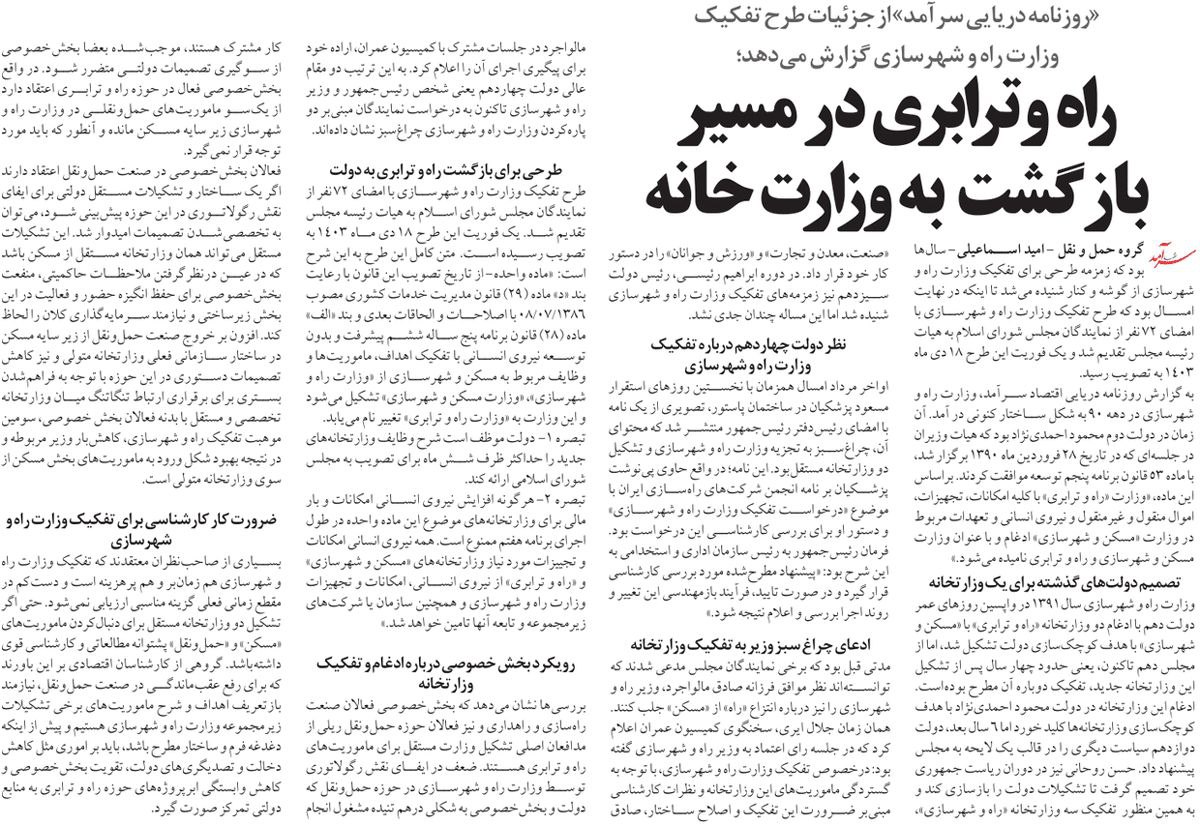 روزنامهٔ اقتصاد سرآمد: راه و ترابری در مسیر بازگشت به وزارت خانه