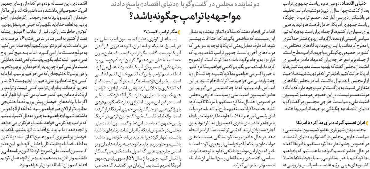 روزنامهٔ دنیای اقتصاد: مواجهه با ترامپ چگونه باشد؟
