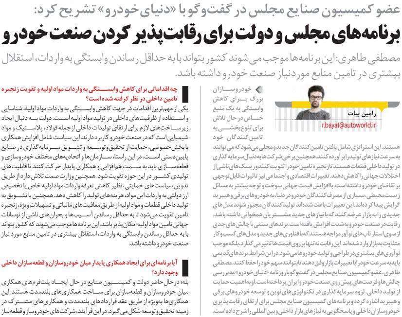 روزنامهٔ دنیای خودرو: سخنی با نمایندگان مجلس برنامههای مجلس و دولت برای رقابتپذیر کردن صنعت خودرو