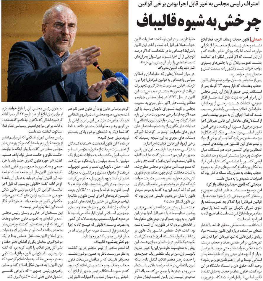 روزنامهٔ همدلی: چرخش به شیوه قالیباف