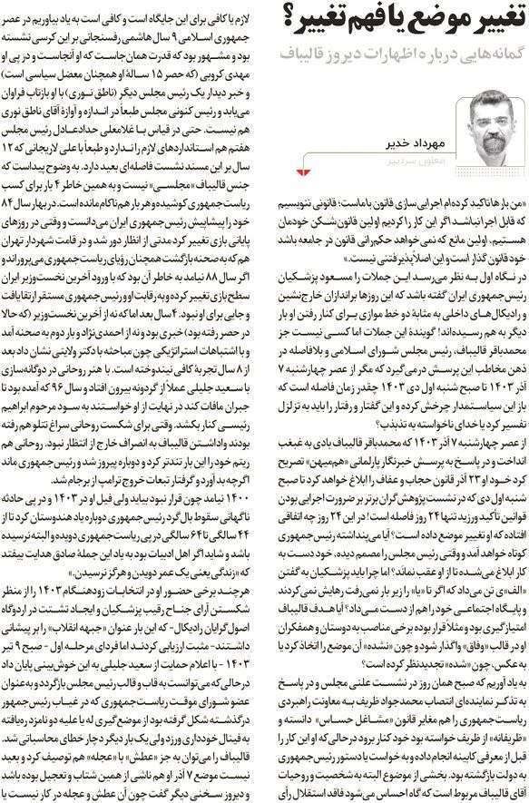 روزنامهٔ همدلی: چرخش به شیوه قالیباف