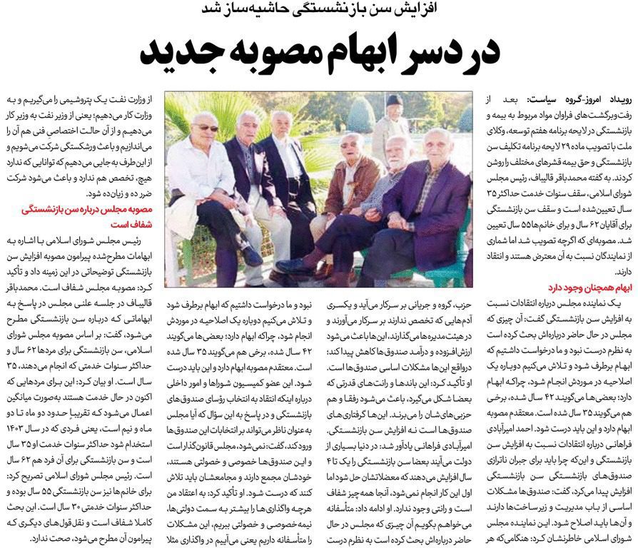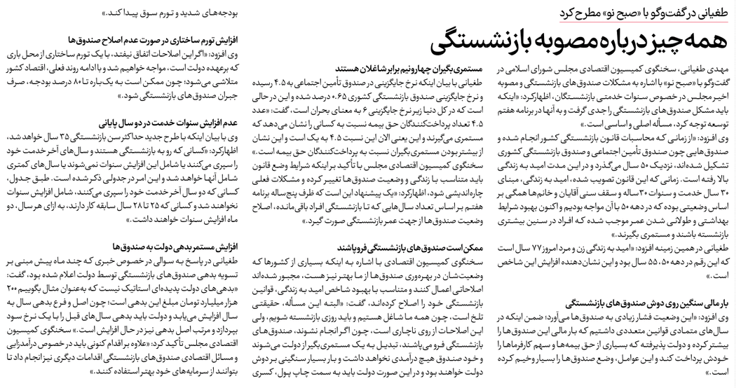 روزنامهٔ صبح نو: همهچیز درباره مصوبه بازنشستگی