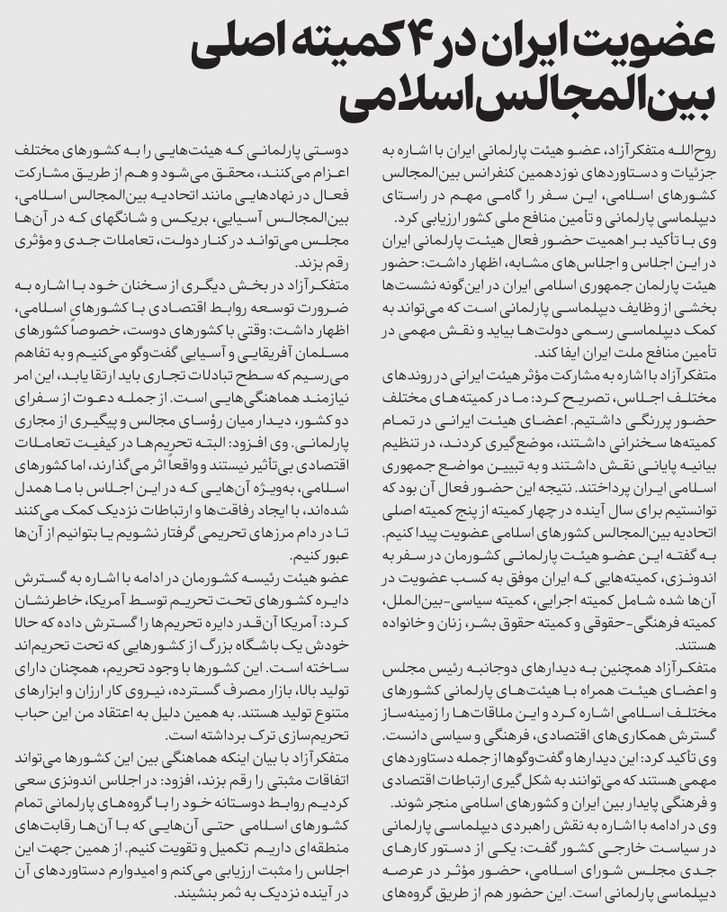 روزنامهٔ جمله: عضویت ایران در ۴ کمیته اصلی بینالمجالس اسلامی