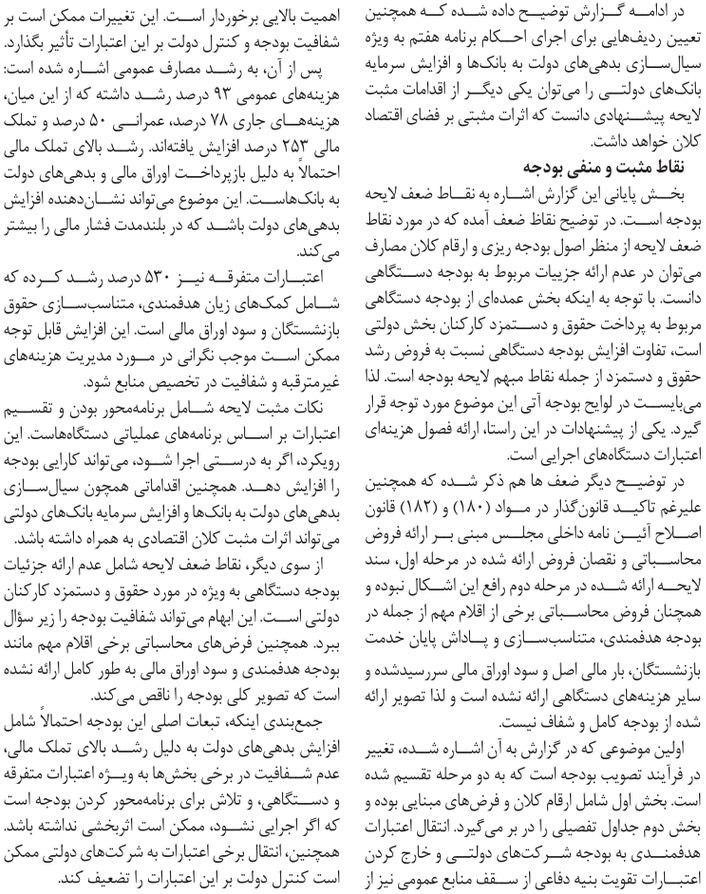 روزنامهٔ ابرار اقتصادی: دولت بودجه را به سلیقه مجلس تغییر داد