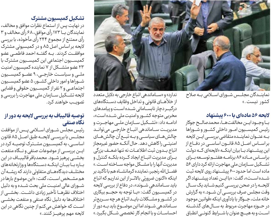 روزنامهٔ ایران: تصویب لایحه سازمان ملی مهاجرت در کمیسیون ویژه