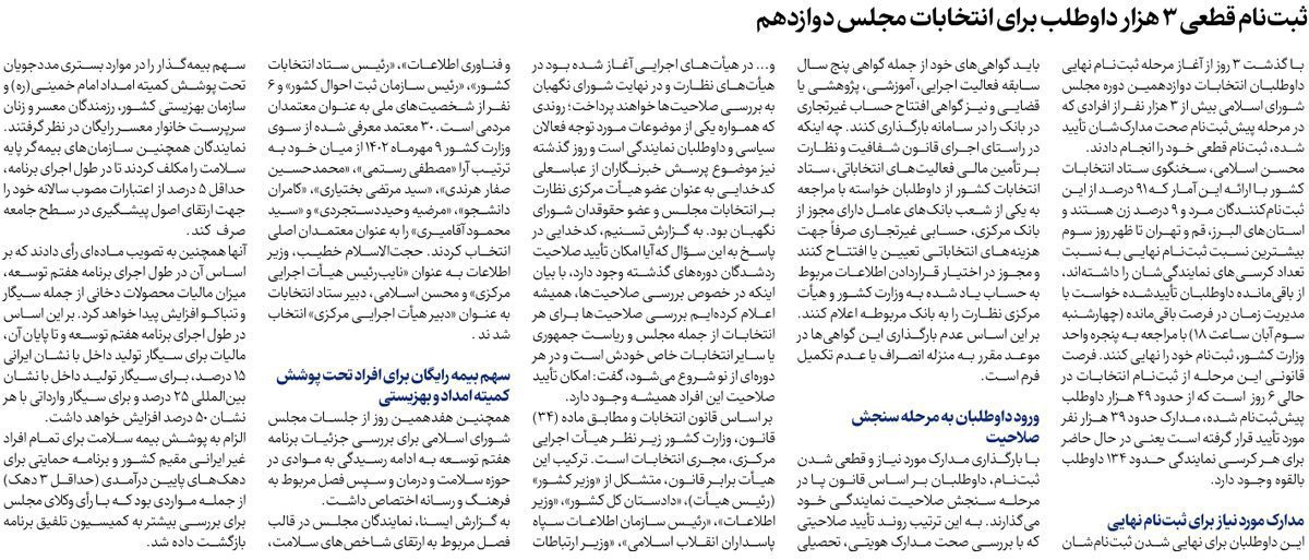 روزنامه ایران: ثبت‌نام قطعی ۳ هزار داوطلب برای انتخابات مجلس دوازدهم