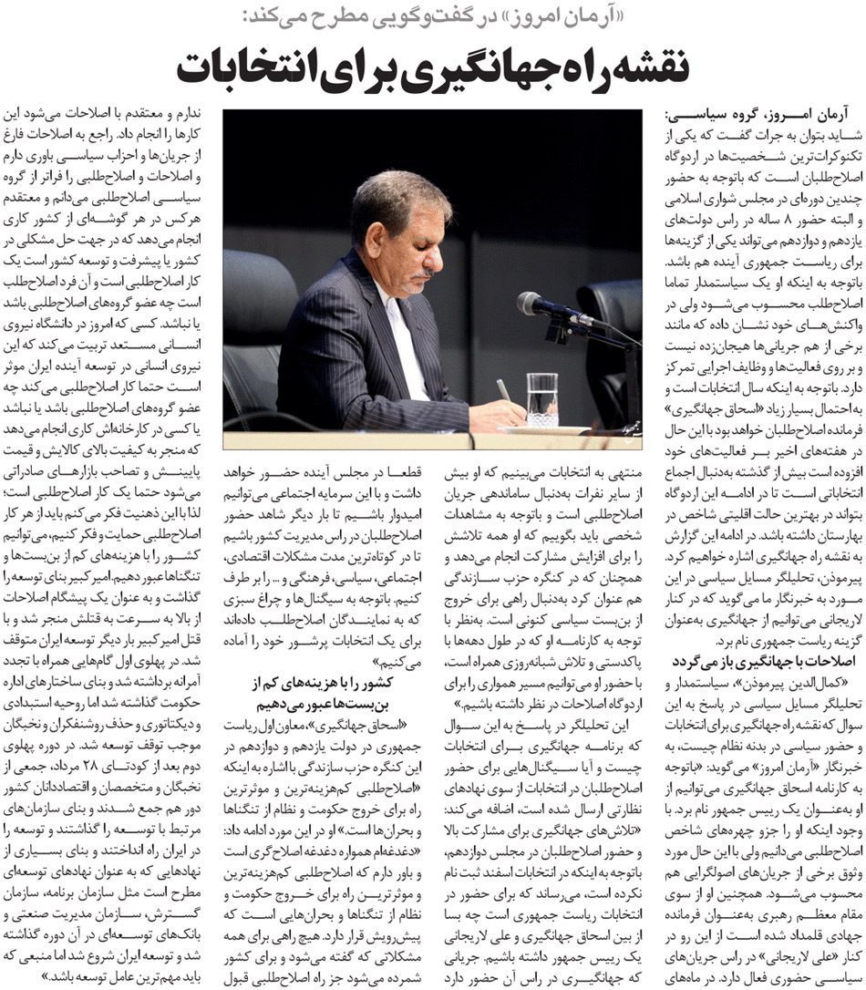 روزنامه آرمان امروز: نقشه راه جهانگیری برای انتخابات