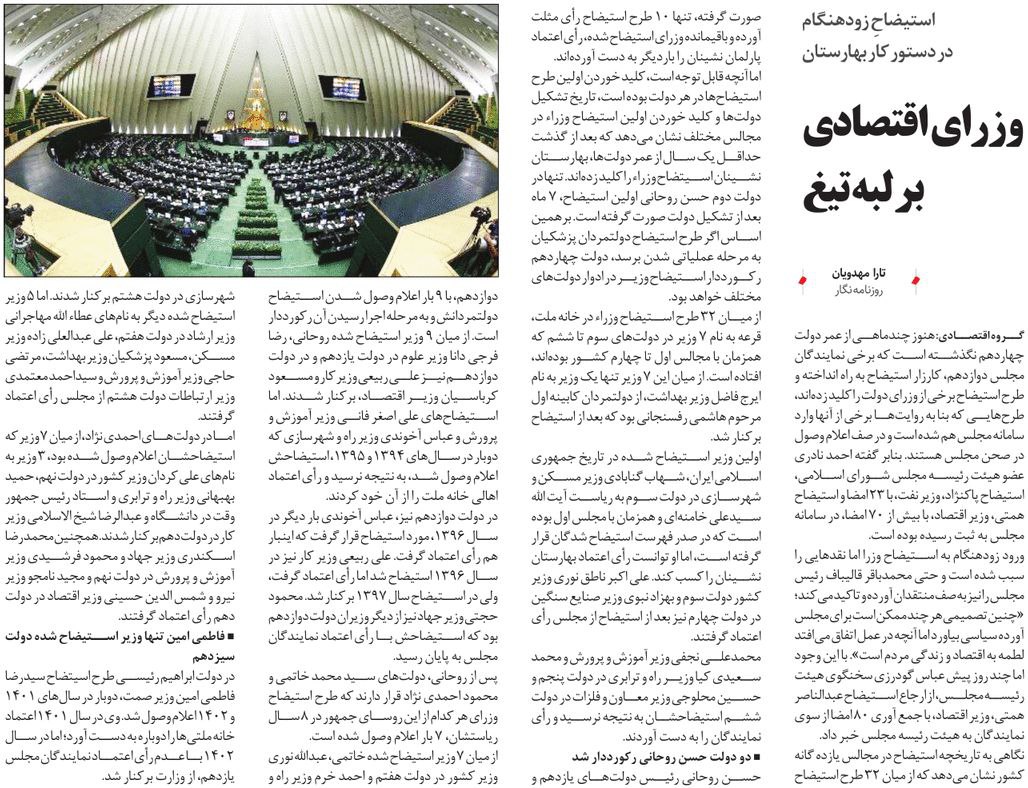 روزنامهٔ نقش اقتصاد: وزرای اقتصادی بر لبه تیغ