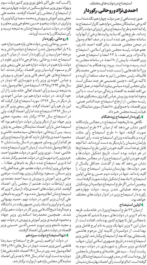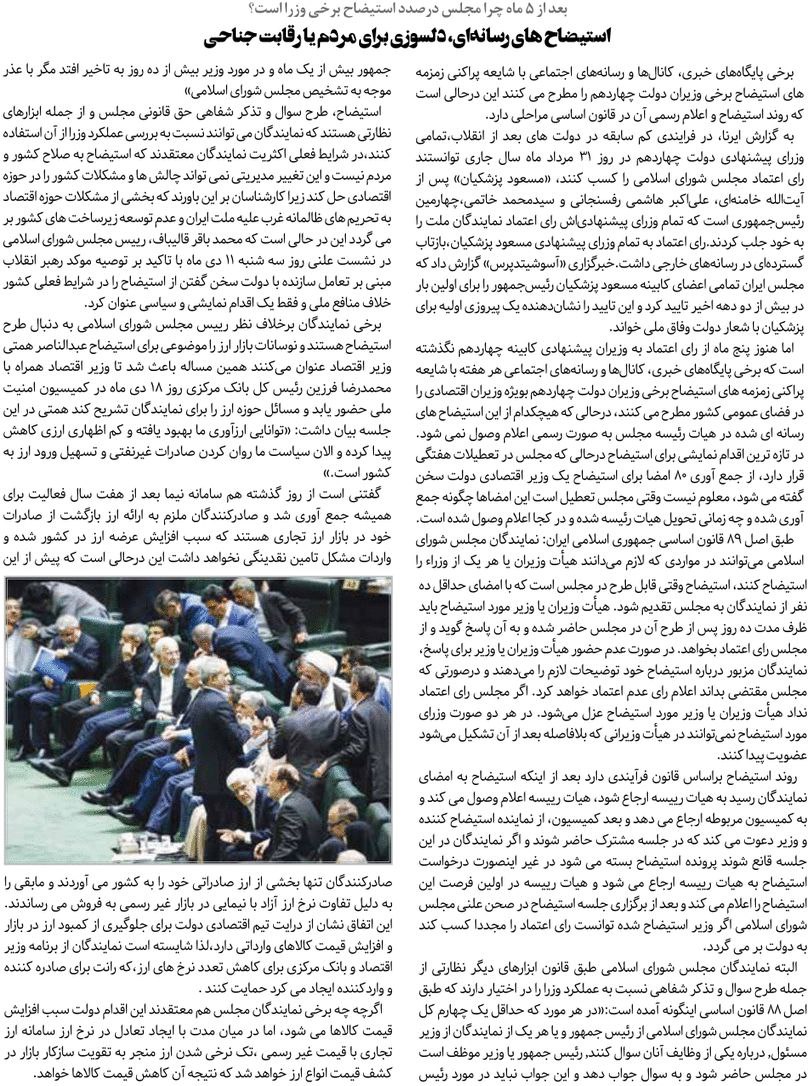 روزنامهٔ آفتاب اقتصادی: استیضاحهای نمایشی، چالش جدید دولت چهاردهم