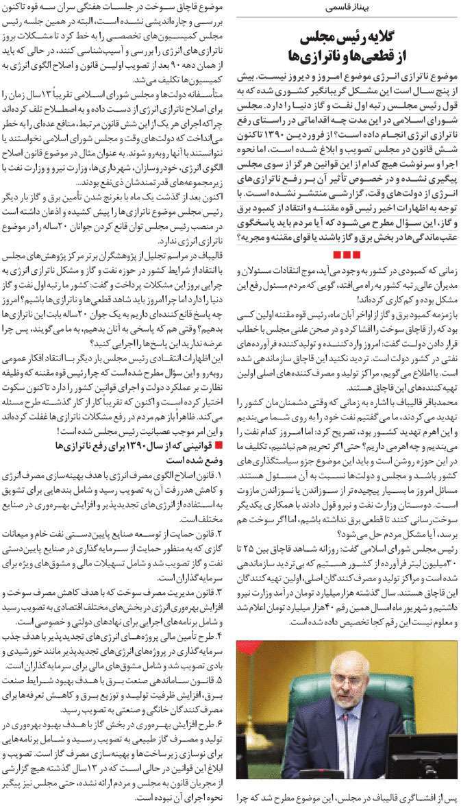 روزنامهٔ جوان: گلایه رییس مجلس از قطعی‌ها و ناترازی‌ها