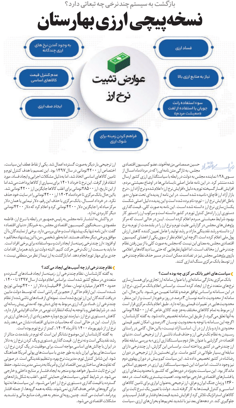 روزنامهٔ دنیای اقتصاد: نسخه‌پیچی ارزی بهارستان
