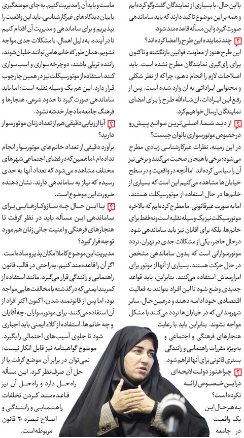 روزنامهٔ جامجم: مجلس پیگیر ساماندهی موتورسواری زنان
