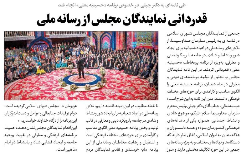 روزنامهٔ جامجم: قدردانی نمایندگان مجلس از رسانه ملی