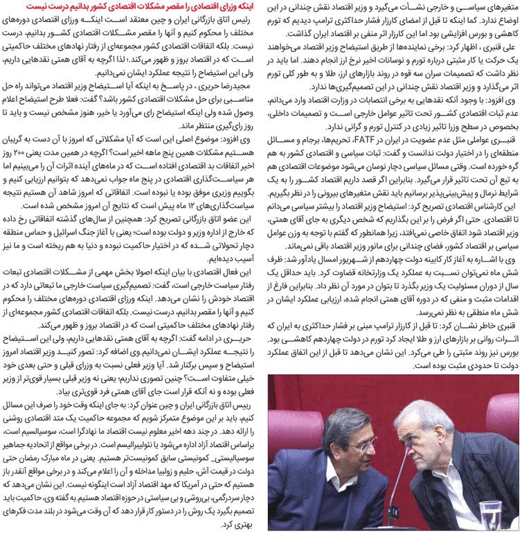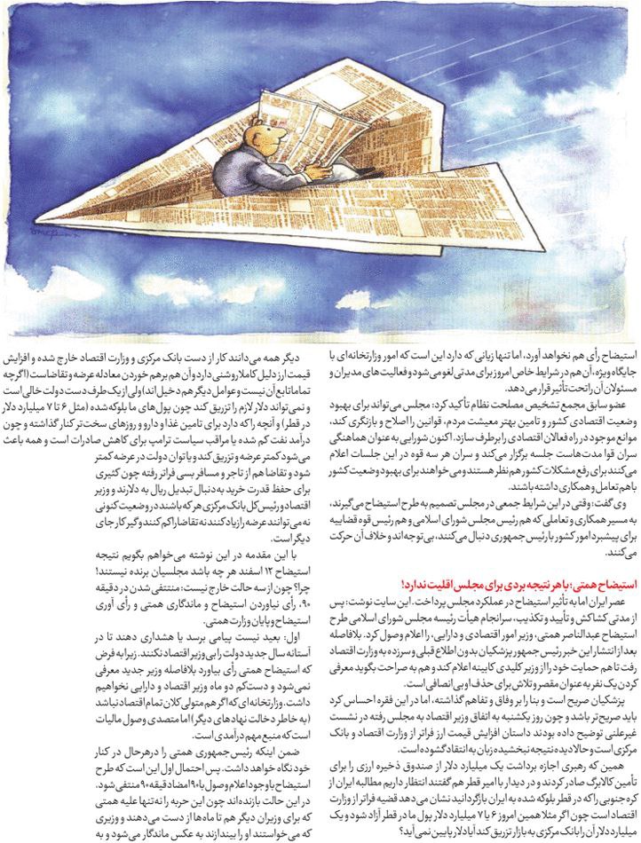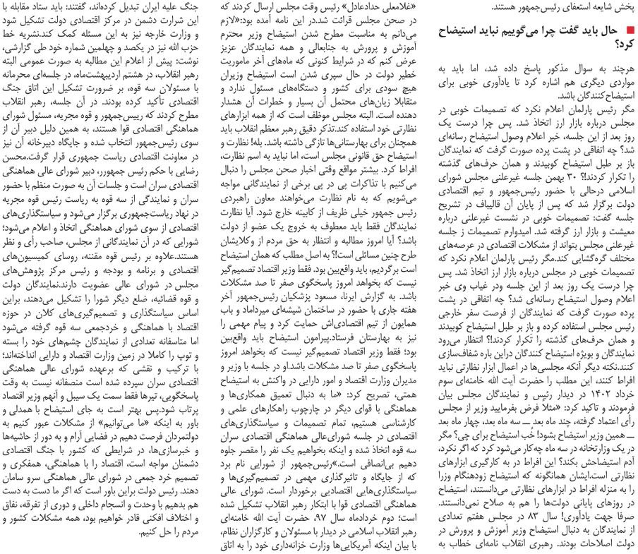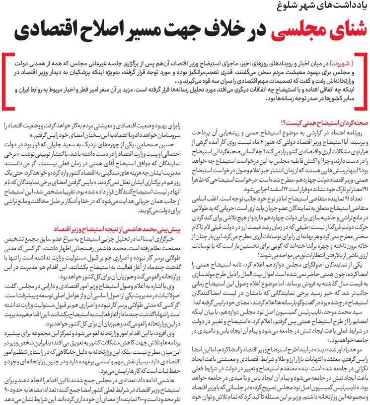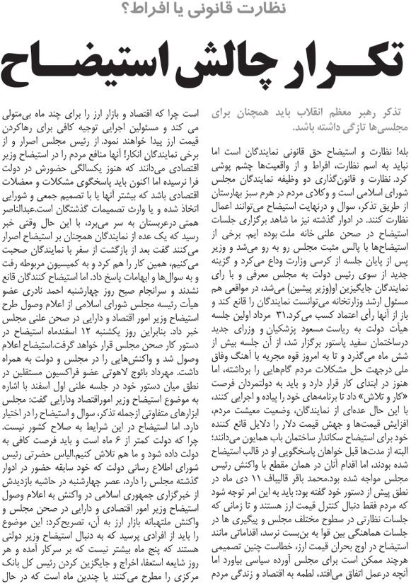 روزنامهٔ آفتاب اقتصادی: تکرار چالش استیضاح