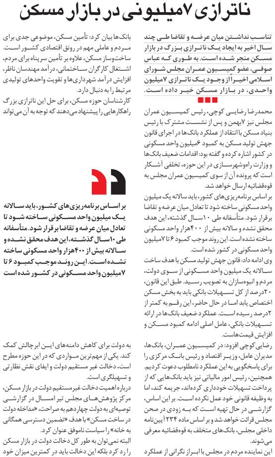 روزنامهٔ جوان: ناترازی ۷ میلیونی در بازار مسکن