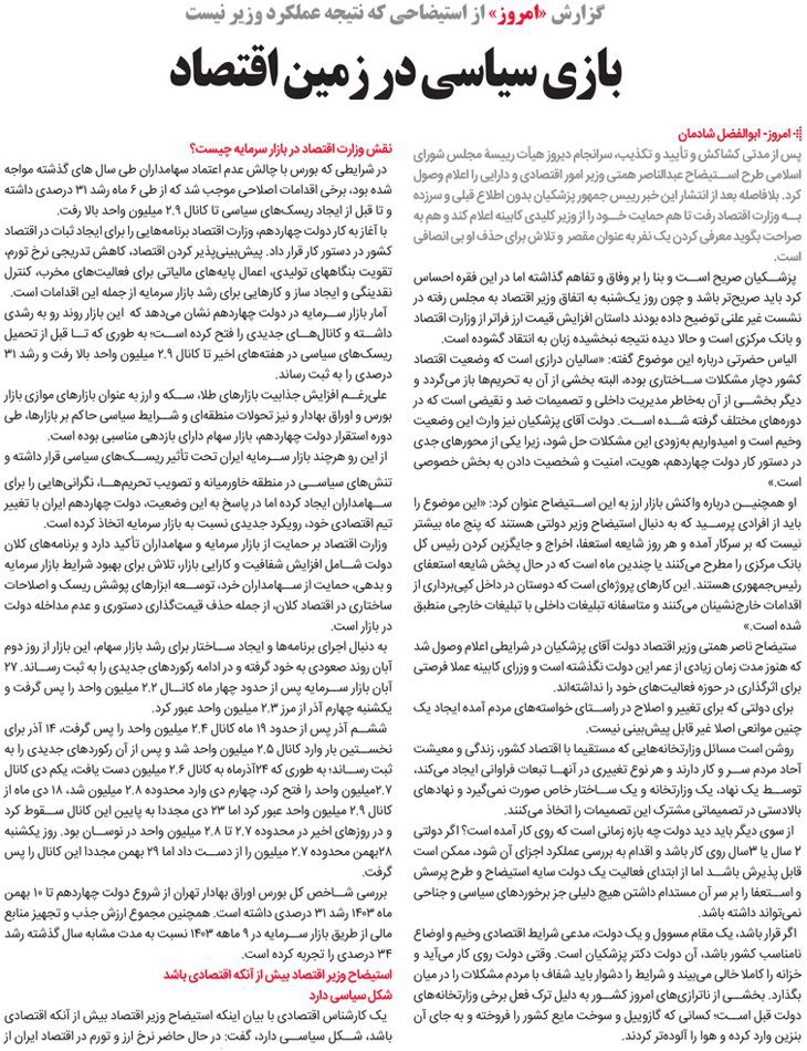 روزنامهٔ امروز: بازی سیاسی در زمین اقتصاد