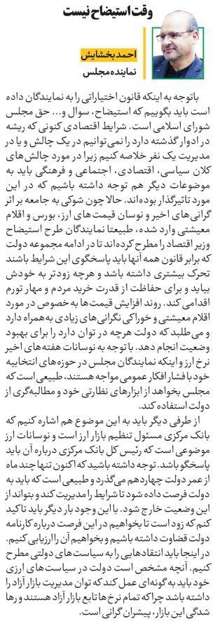 روزنامهٔ آرمان ملی: وقت استیضاح نیست