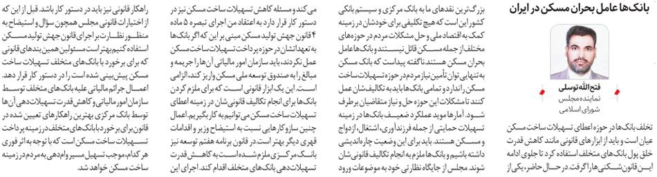 روزنامهٔ نقش اقتصاد: بانک‌ها عامل بحران مسکن در ایران