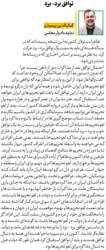 روزنامهٔ آرمان ملی: توافق برد – برد