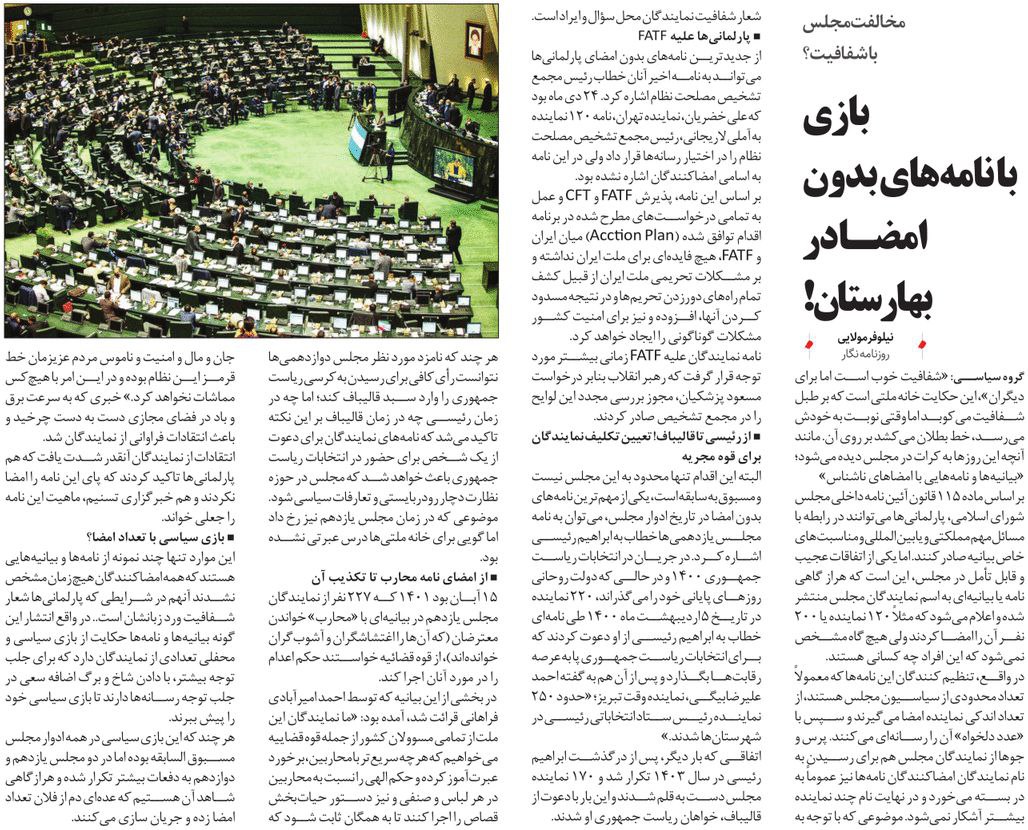 مجلس در مطبوعات – ۶ بهمن ۱۴۰۳