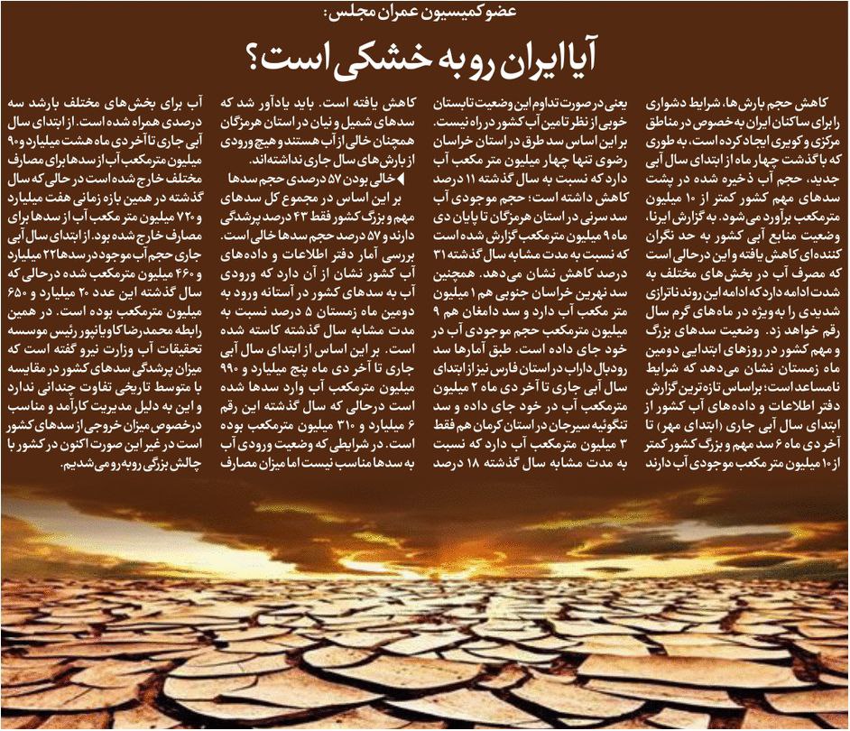روزنامهٔ آرمان ملی: آیا ایران رو به خشکی است؟